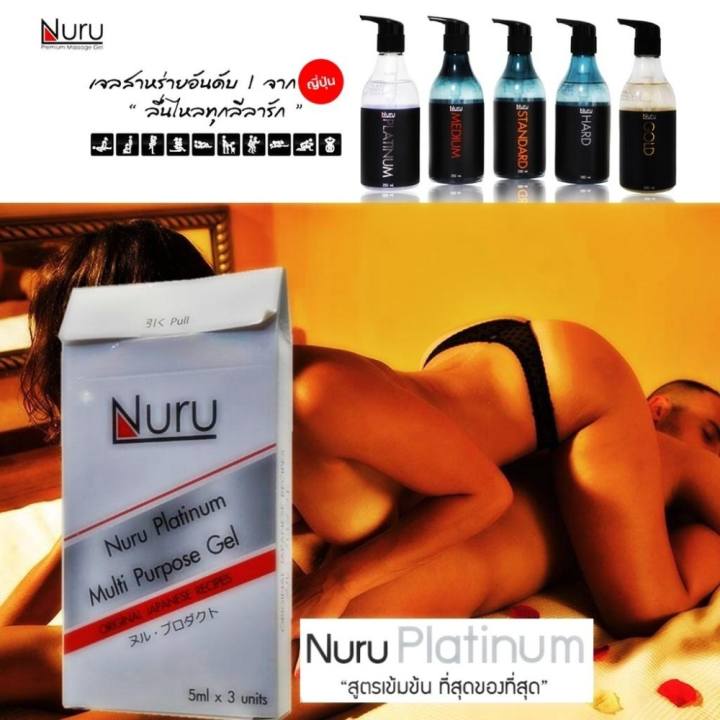 Nuru PLATINUM Gel นูรุ แพลตินั่ม สูตรเข้มข้นหล่อลื่น เพื่อมีเพศสัมพันธ์ นวดตัว ไร้สี ไร้กลิ่น ไร้สารตกค้าง อ่อนโยน ให้ความรู้สึกเหมือนน้ำหล่อลื่นธรรมชาติ ไม่เหนียวไม่ทิ้งคราบ รอยด่าง บนเสื้อ ผ้าปู 1 ซอง บรรจุ 15ml นิยมมากมากในหลายจังหวัด และเป็นสินค้าที่กำลังได้รับการค้นหามากมาย ด้วยการผลิตที่ได้มาตรฐาน การออกแบบผลิตภันฑ์ การส่งเสริมการขายต่างๆมากมายเช่น การจัดโปรโมชั่น ส่วนลดสินค้า